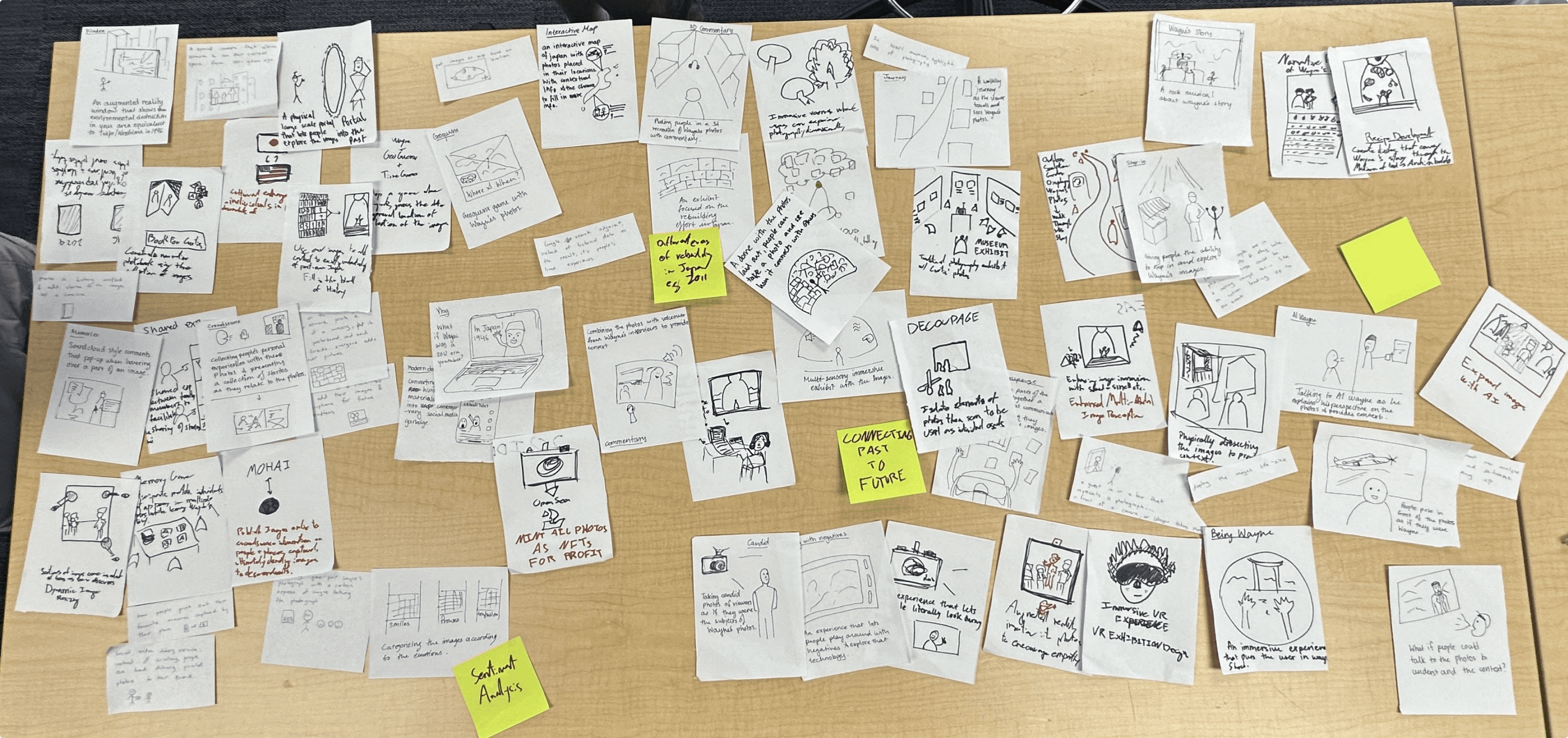 I ideated about 80 concepts. I encouraged thinking about ideas we specifically did not want to pursue (like NFTs or AI-modified images) as an exercise to get better recognition of what we did want to make.