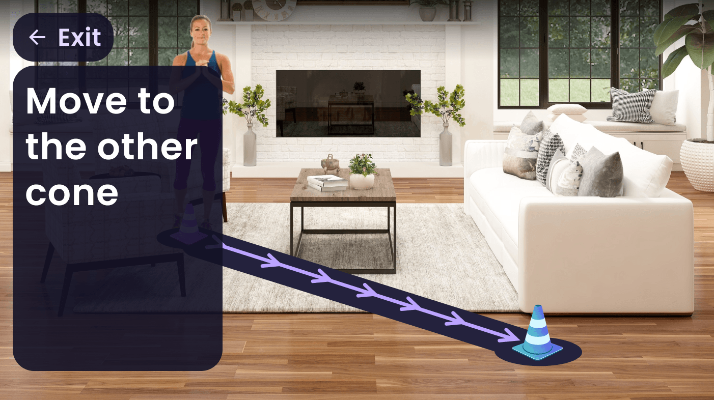 Place 2 cones at opposite corners to define your workout zone. Drag to move, double-click to remove.